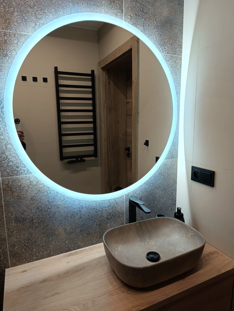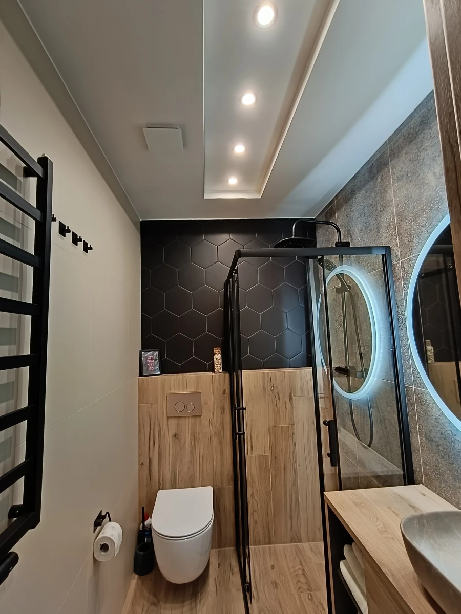 Łazienka z natryskiem typu deszczownica i suszarką