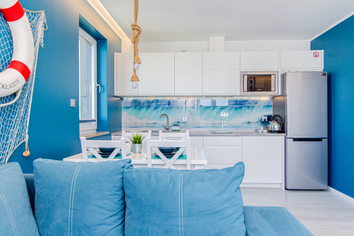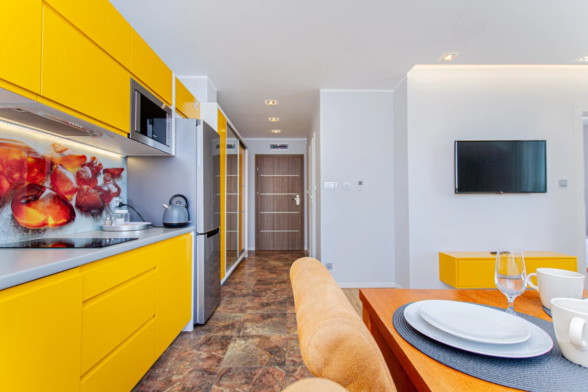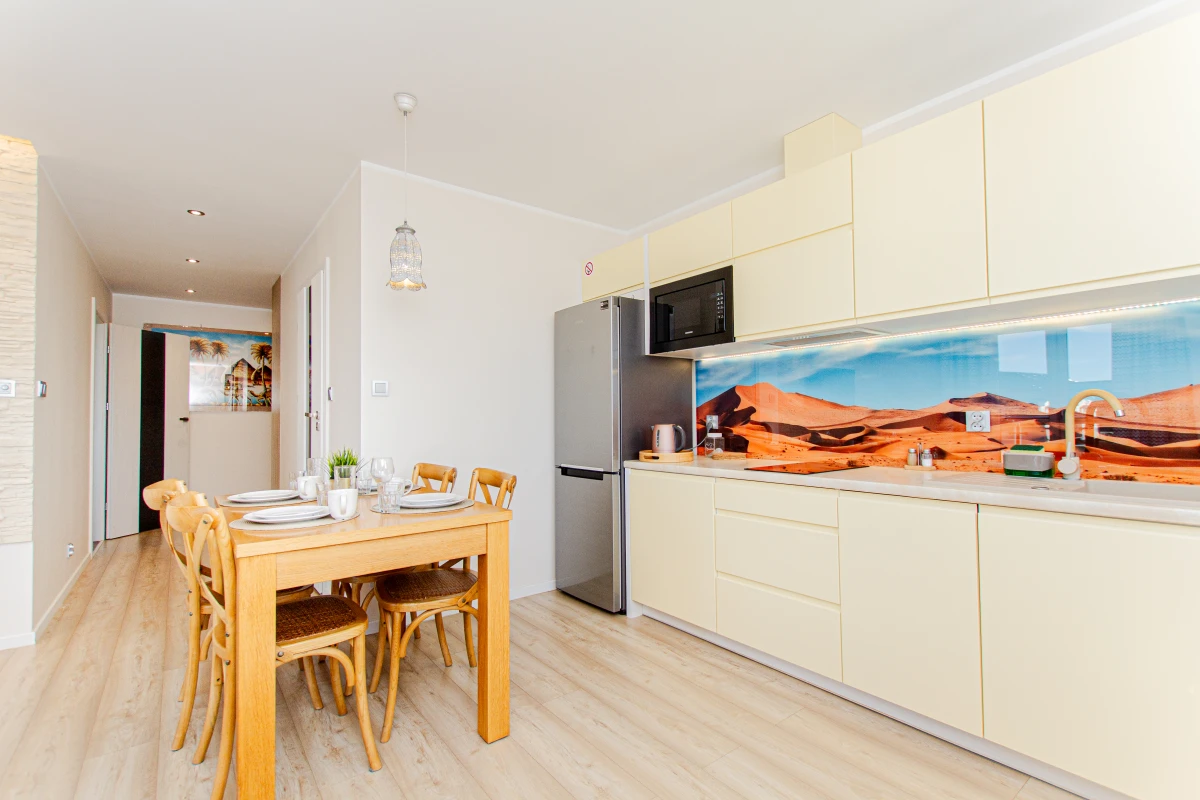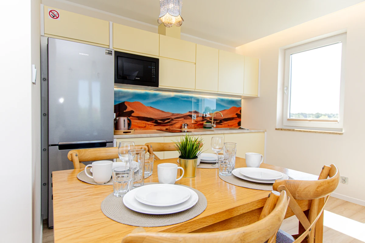 – aneks kuchenny ; ,lodówko-zamrazalnik ,indukcja, zmywarka , mikrofala, czajnik , naczynia i garnki ,płyn donaczyń, ręczniki i kostki do zmywarki