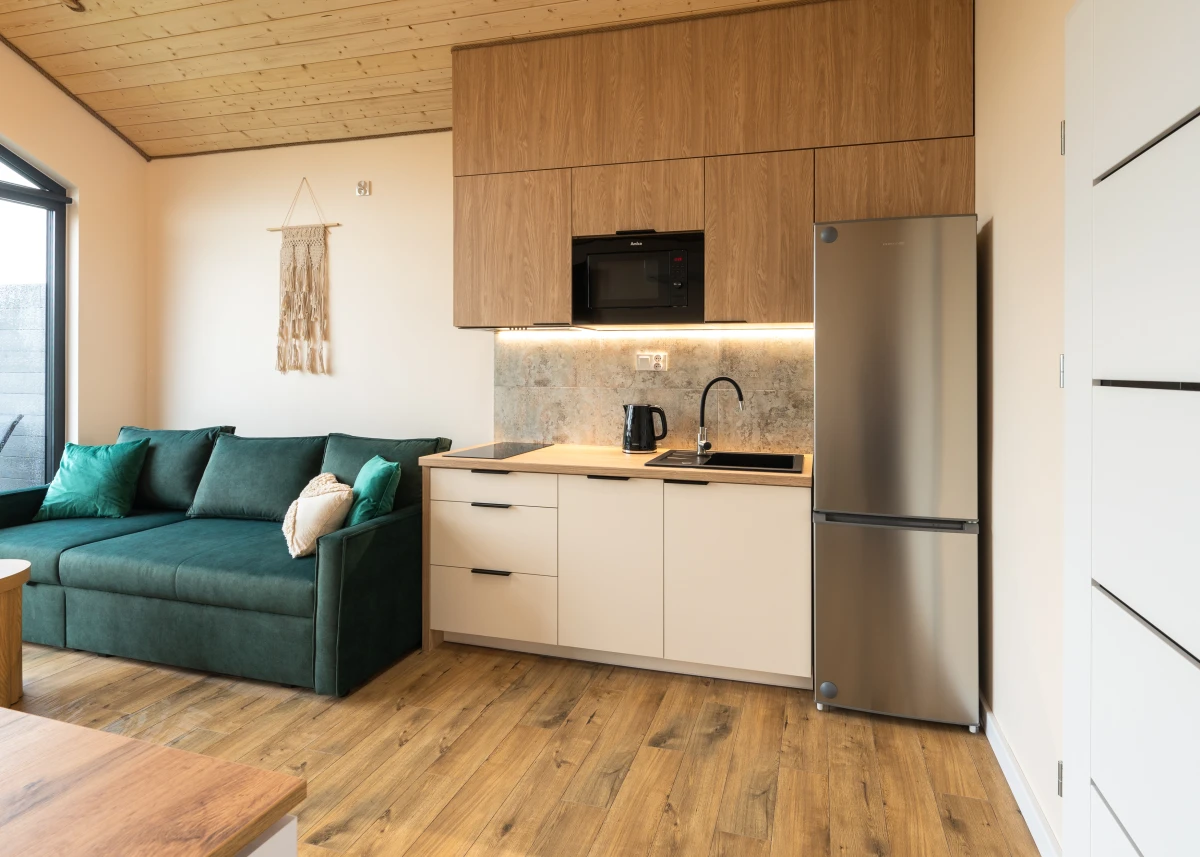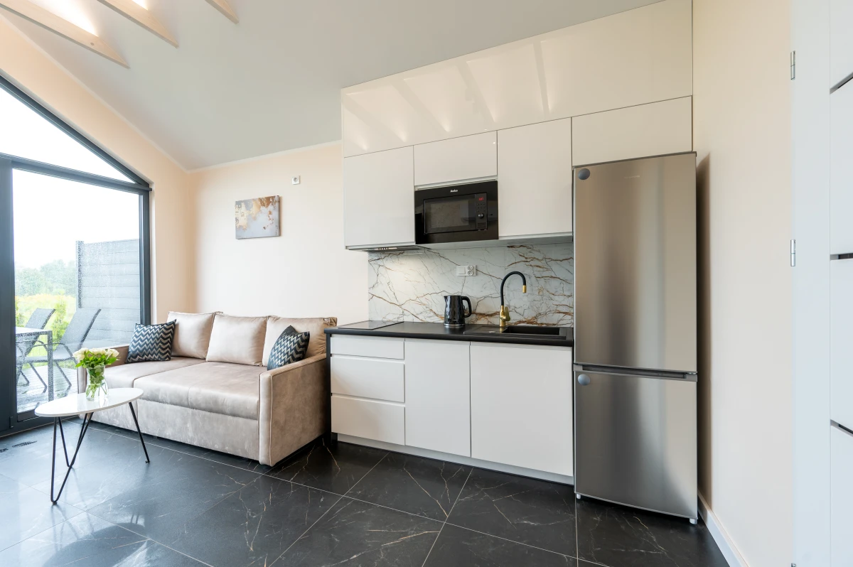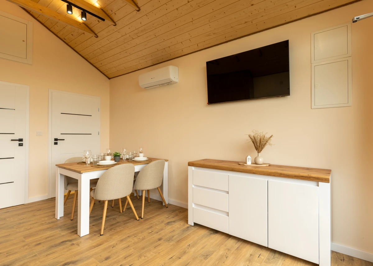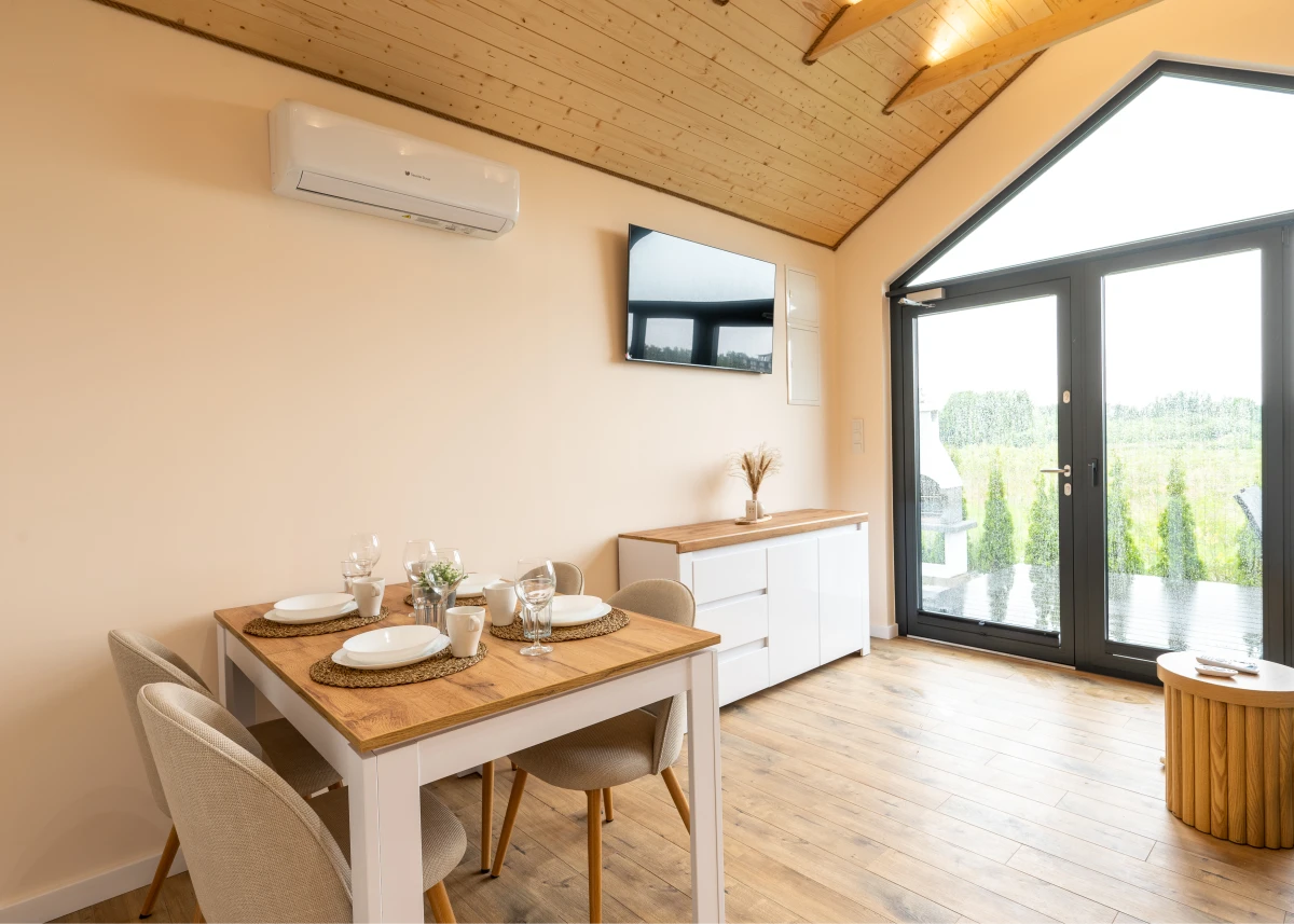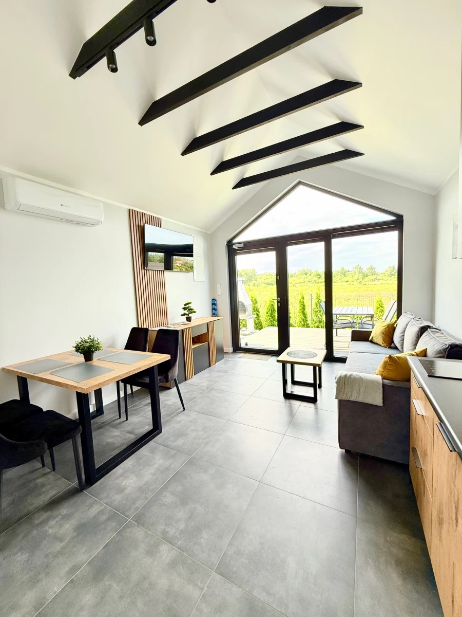 Oferujemy klimatyzowane, przytulne, nowocześnie i stylowo urządzone całoroczne domki typu stodoła o powierzchni 35 m2 dla maksymalnie 4 osób, które zapewnią wszystko to, czego potrzebują Państwo do pełnego relaksu.