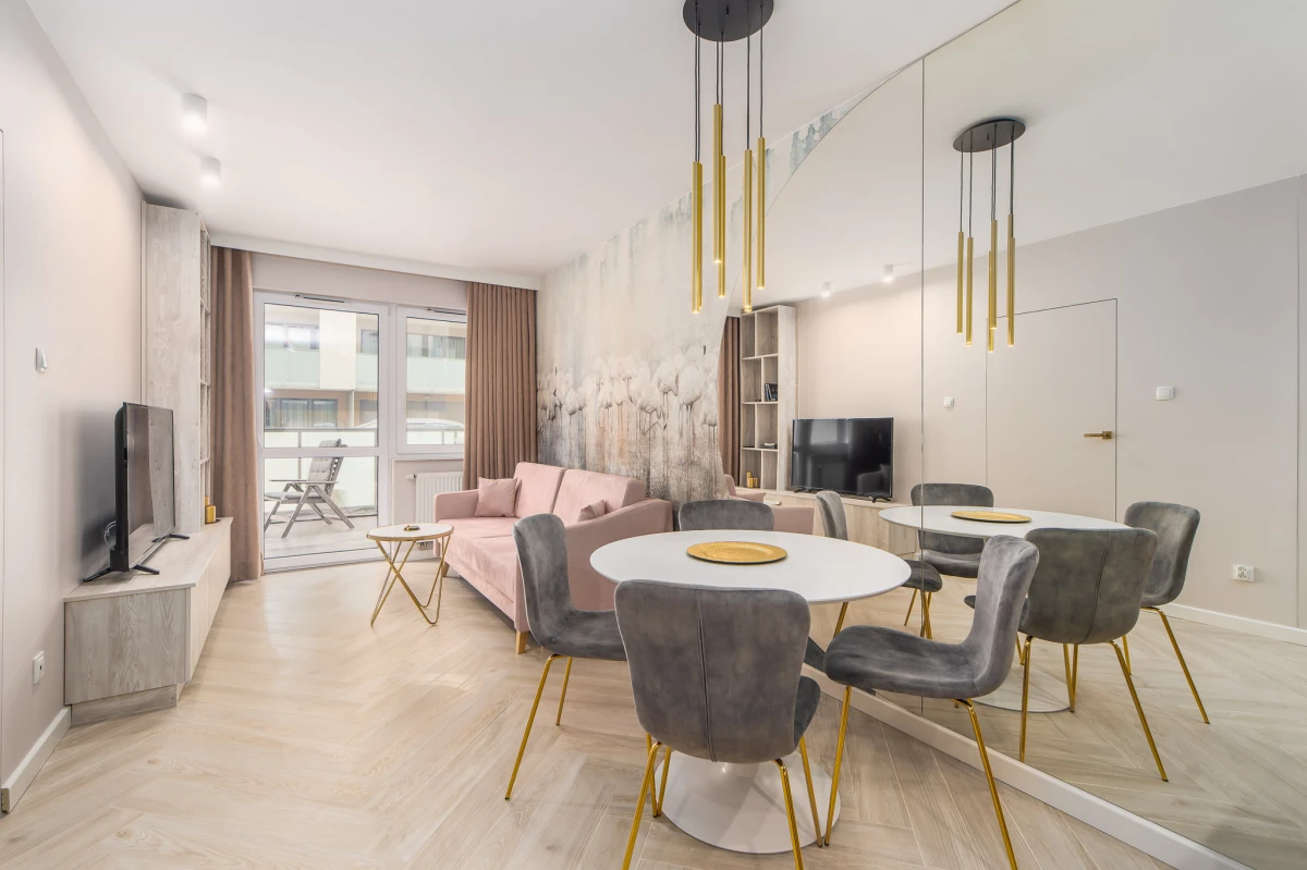Apartament wykończony jest w najwyższym standardzie, w pełni wyposażony i umeblowany z darmowym WiFi.