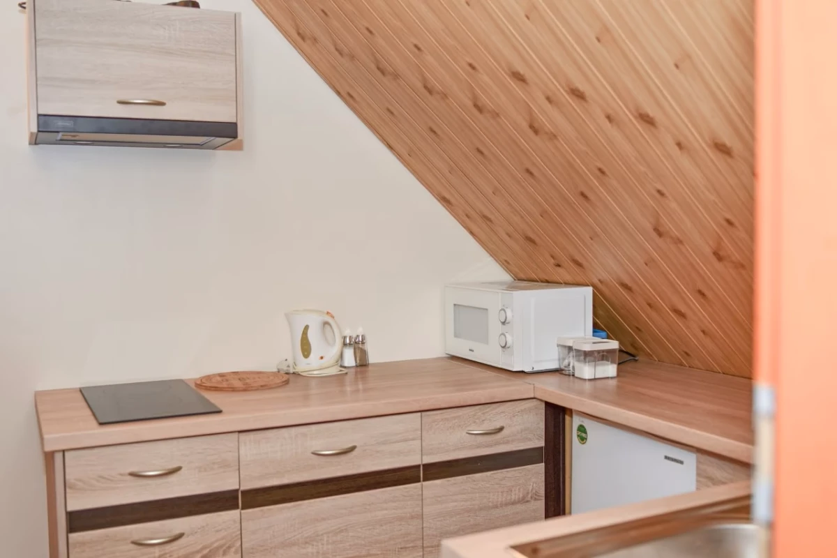 aneks kuchenny do dyspozycji gości (w pełni wyposażony) 2 płyty indukcyjne, mikrofalówka, duża lodówka z zamrażalnikiem, czajniki.
