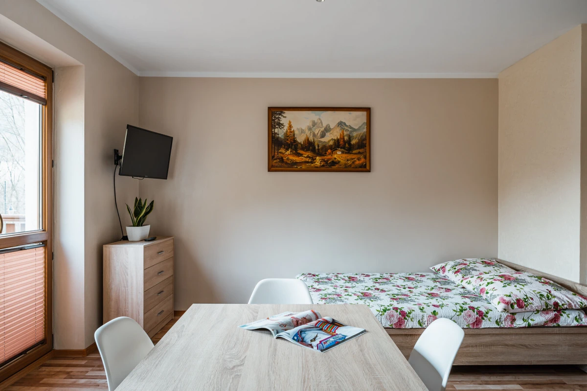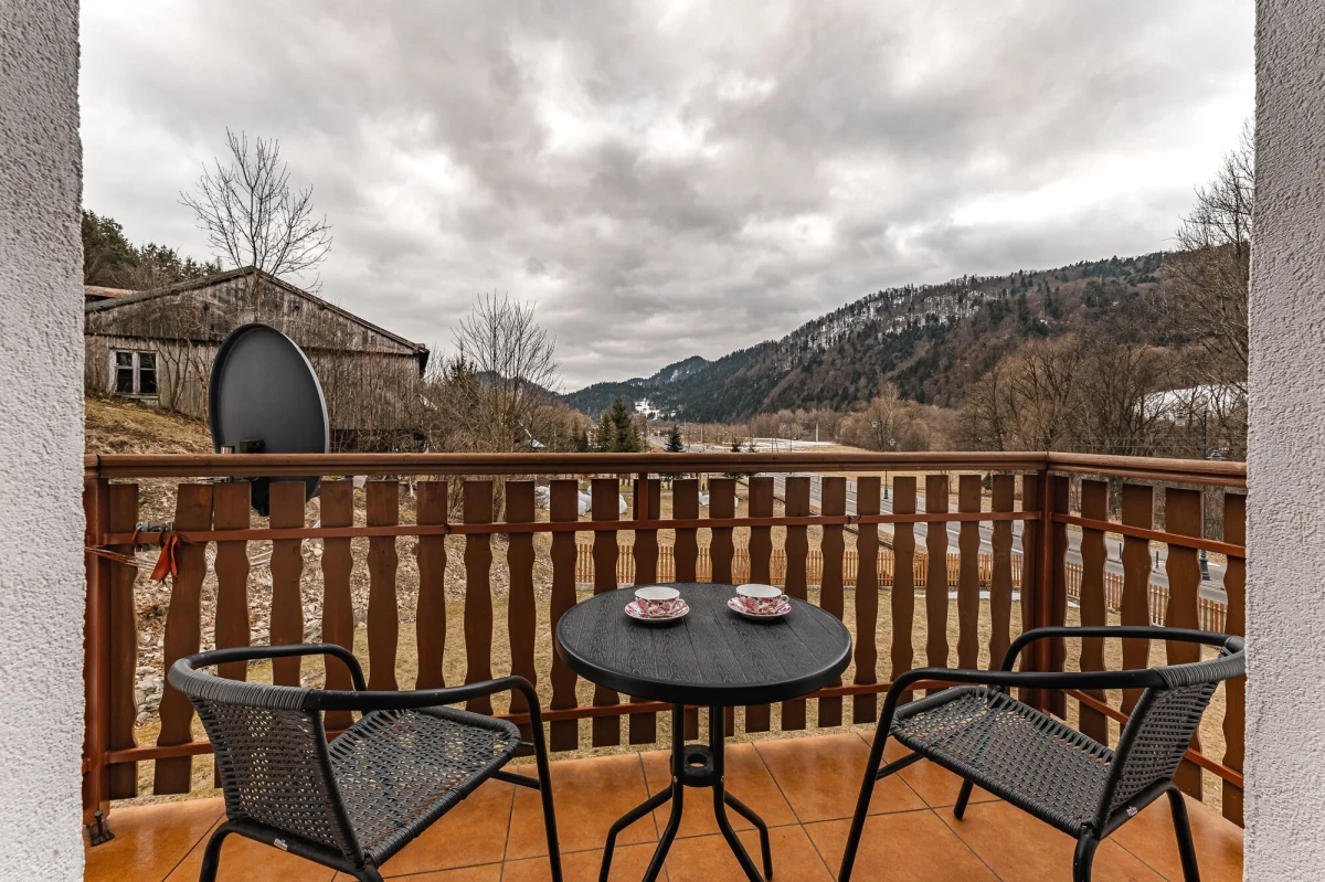 studio 2+2 (dwupokojowe) z łazienką i balkonem z widokiem na góry.