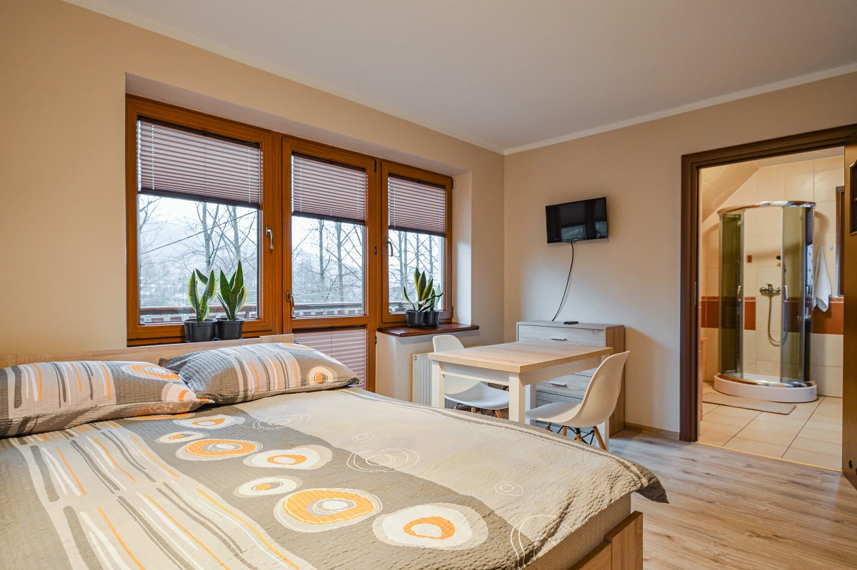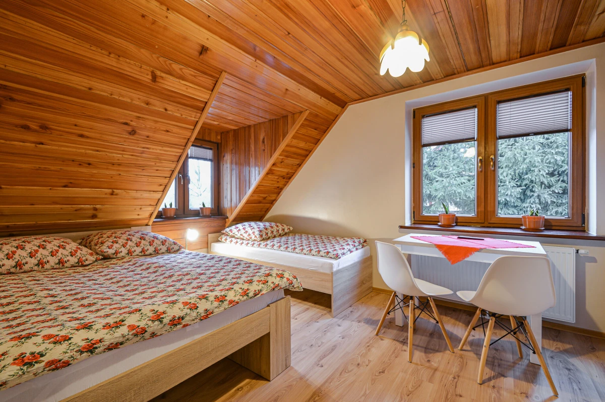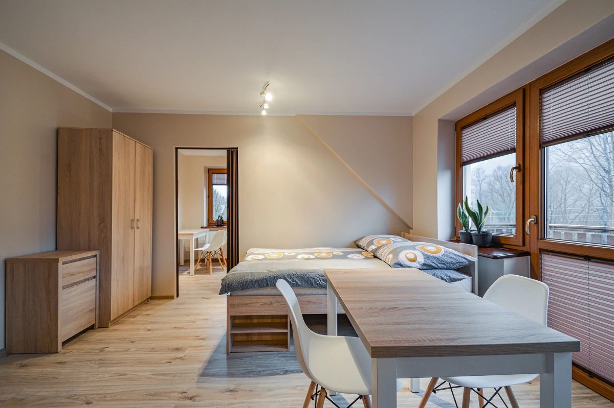 apartament typu studio (dwupokojowe) 3+2 z możliwością dostawki z własnym aneksem kuchennym i łazienką całe piętro tylko do Państwa dyspozycji.