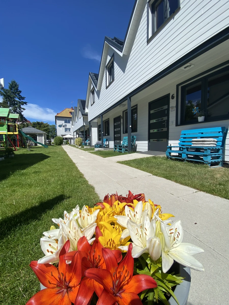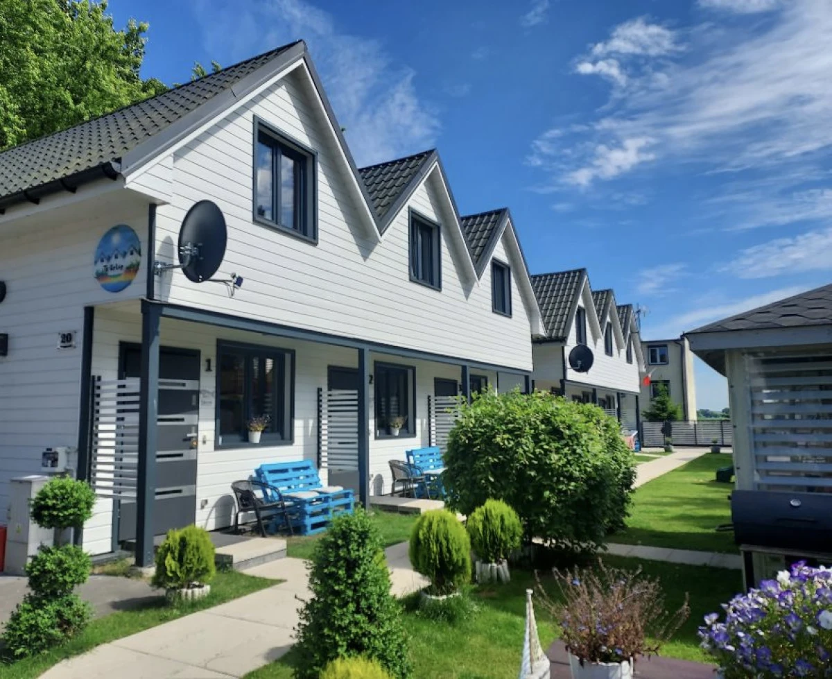 Komfortowe, klimatyzowane domki polozone nad samym jeziorem Jamno w odległości 300m do morza. Domki 6-osobowe z dwoma oddzielnymi sypialniami na piętrze, na parterze salon z w pełni wyposażonym aneksem kuchennym i łazienką.