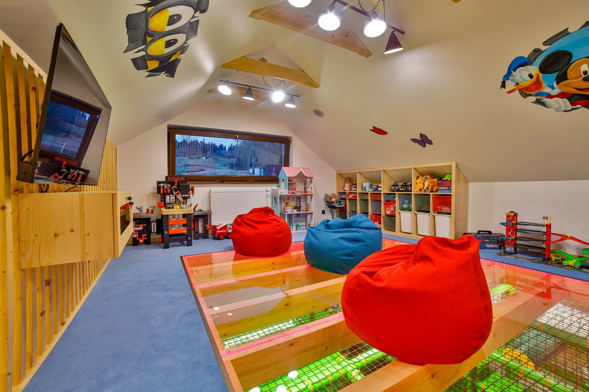 Wnętrza naszych domków mają za zadanie dać Ci komfort wypoczynku. Jesteśmy tutaj, by współgrać z naturą i czerpać z niej to co najlepsze. Uzdrowiskowy charakter naszej miejscowości śmiało wkracza do wnętrz domków. Został wyrażony w specjalnych lampach solnych oraz grocie solnej z tężnią solankową, z której mogą korzystać nasi goście. Aby jeszcze bardziej uatrakcyjnić pobyt w Słonym Wzgórzu, do Twojej dyspozycji oddajemy jacuzzi, saunę, zewnętrzny basen, boisko do siatkówki, miejsce na ognisko i grill oraz salę zabaw z małpim gajem i zewnętrzny plac zabaw dla dzieci z rozmaitymi atrakcjami.