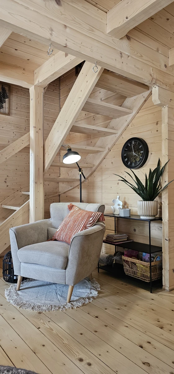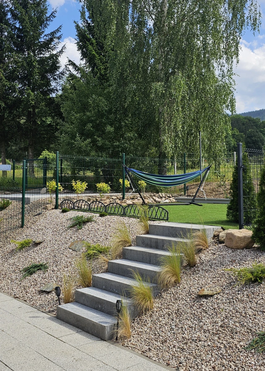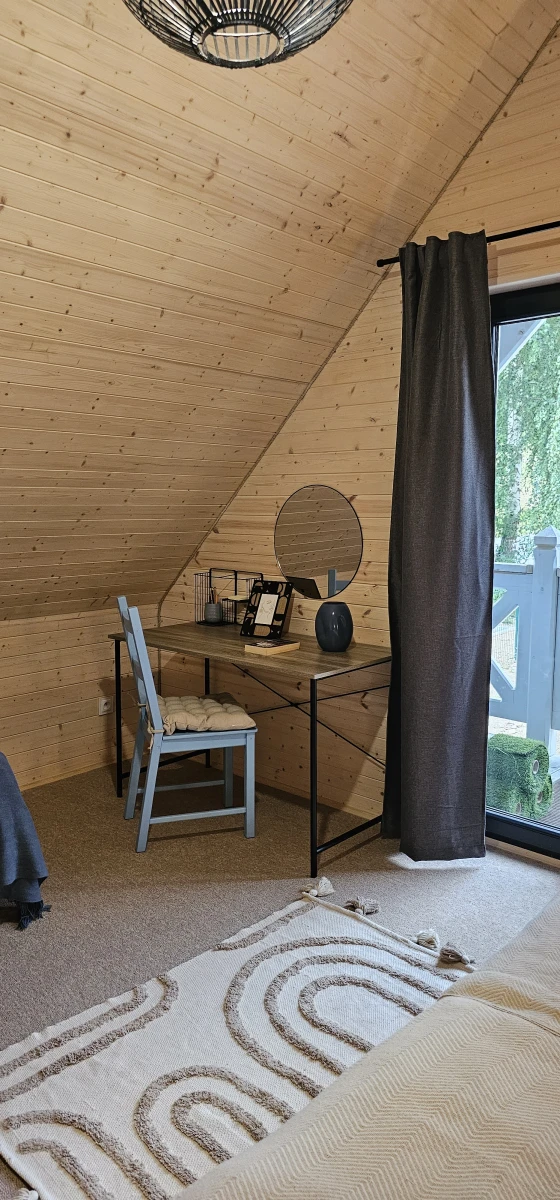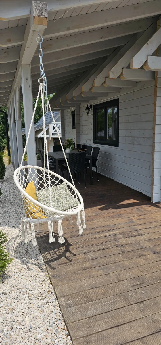 Do dyspozycji gości oddajemy komfortową przestrzeń, w której można poczuć się swobodnie i naprawdę odpocząć. Duży taras z miejscem do grillowania sprzyja wspólnym wieczorom, a wygodna strefa wypoczynkowa pozwala cieszyć się poranną kawą na świeżym powietrzu. Leżaki i hamak zachęcają do błogiego relaksu – z książką, w ciszy, wśród zieleni i śpiewu ptaków.