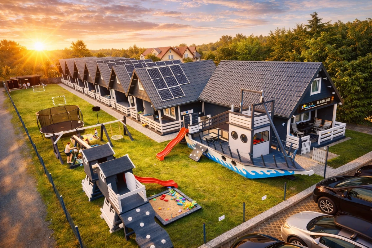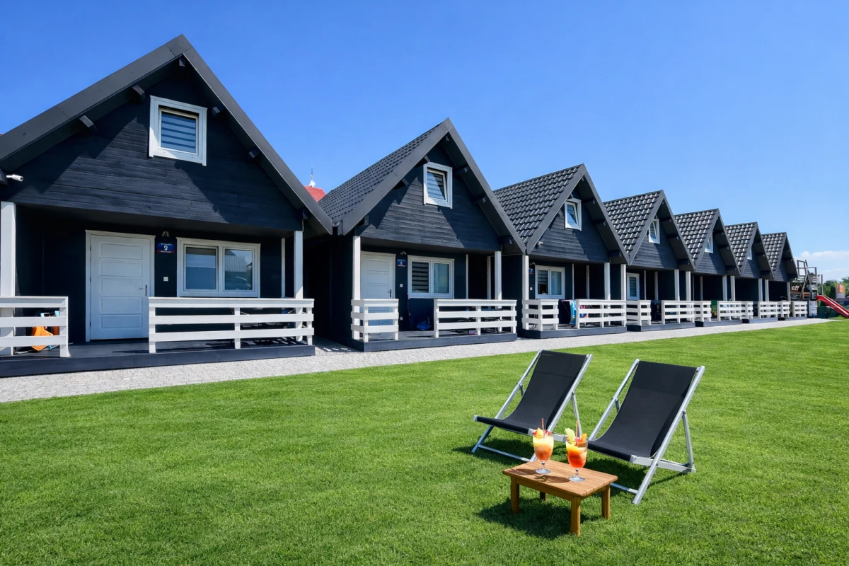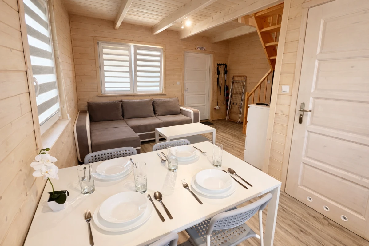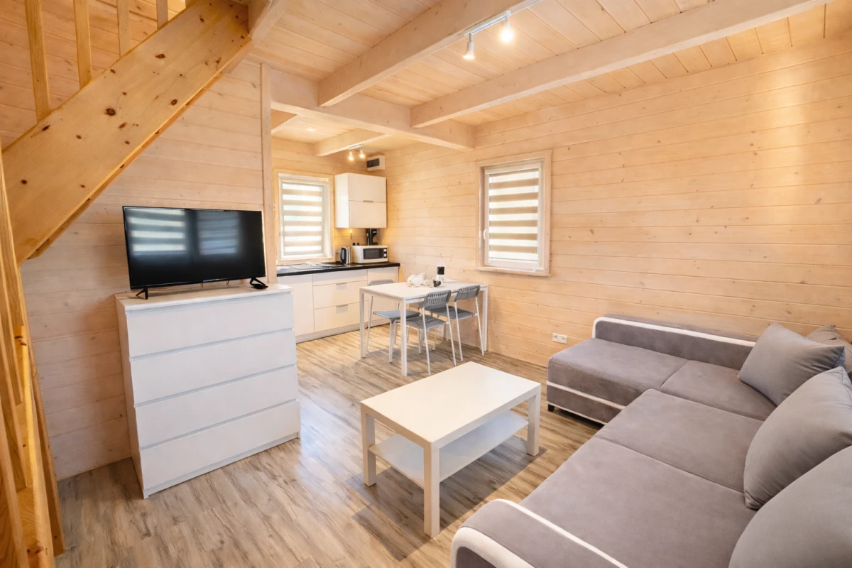 Każdy domek ma powierzchnię 50m2 i może pomieścić do 7 osób.