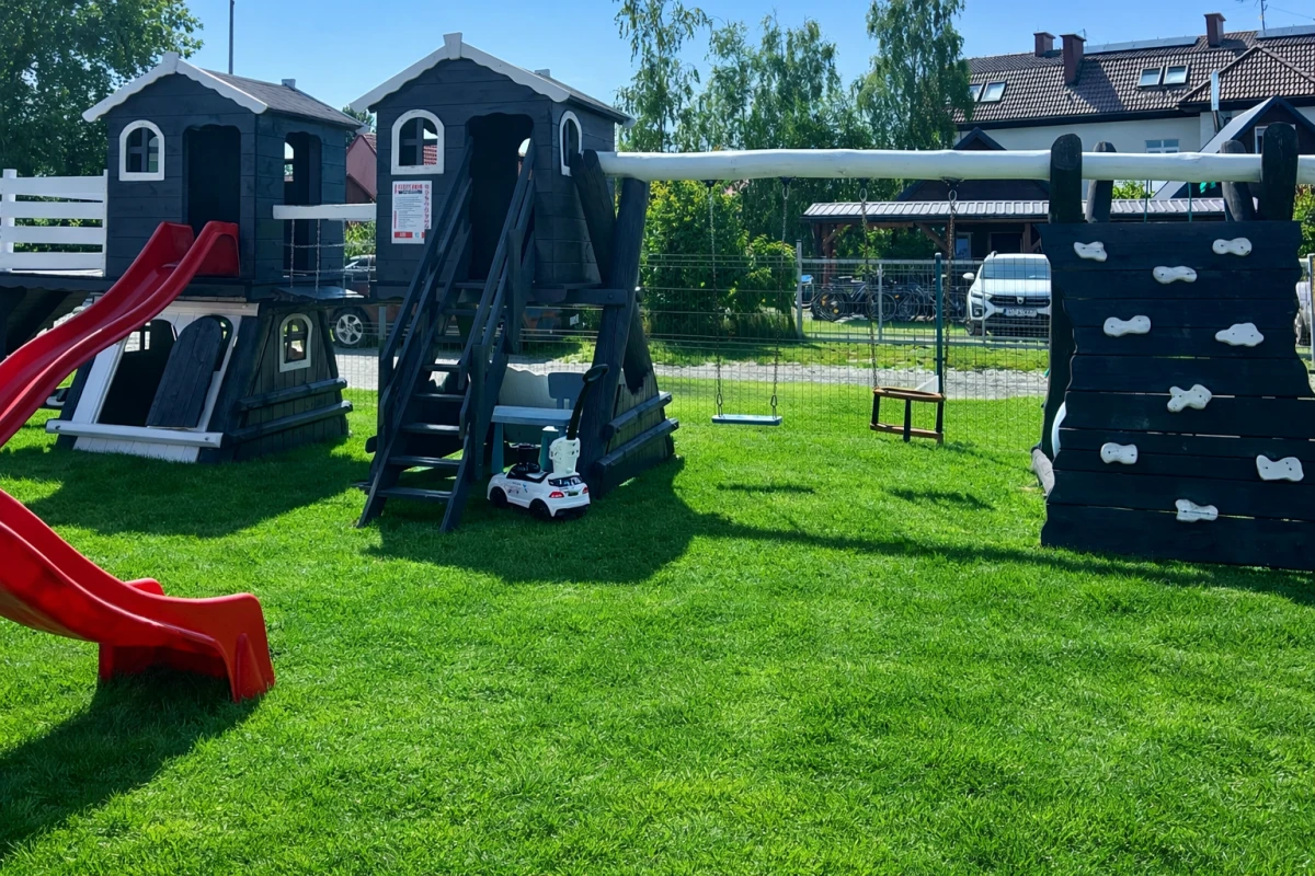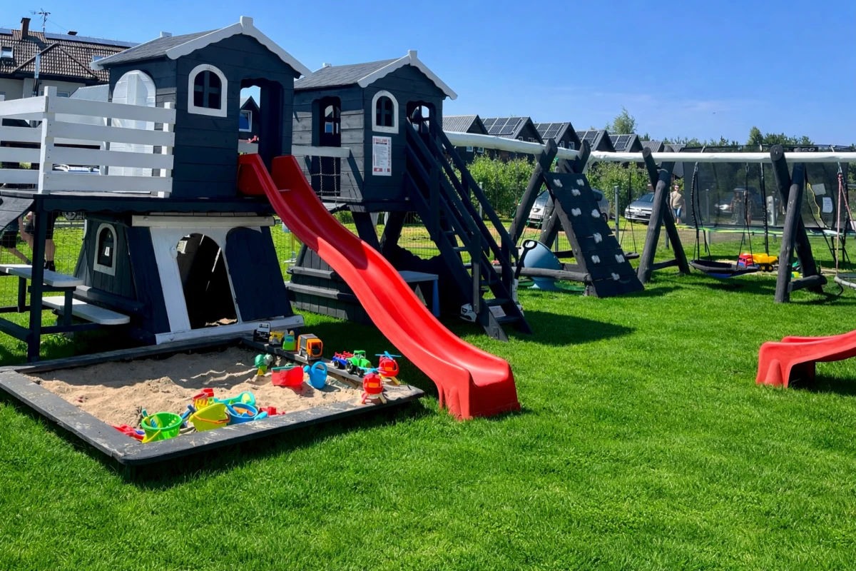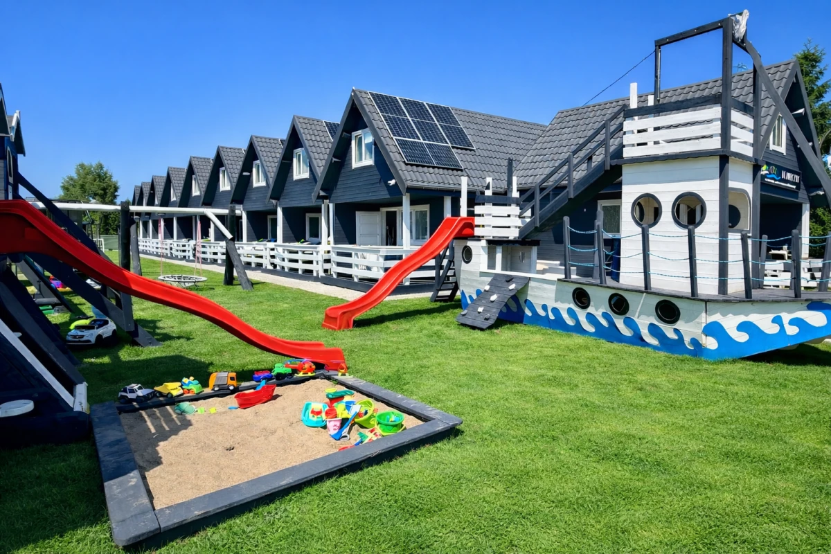 Na terenie ośrodka nasi Goście znajdą BEZPŁATNĄ WYPOŻYCZALNIE ROWERÓW, miejsce na grill, rewelacyjny DUŻY PLAC ZABAW ZE STATKIEM PIRACKIM, na którym dzieci bawią się godzinami, mini boisko do piłki nożnej, boisko do siatkówki lub badmintona, MONITOROWANY PARKING, bezpłatne WIFI.