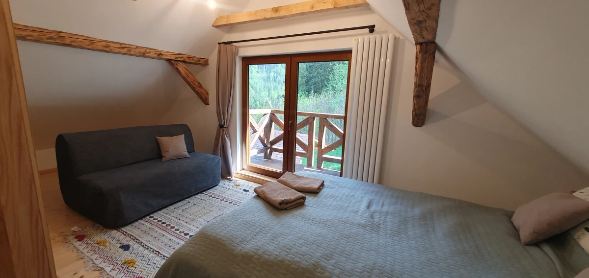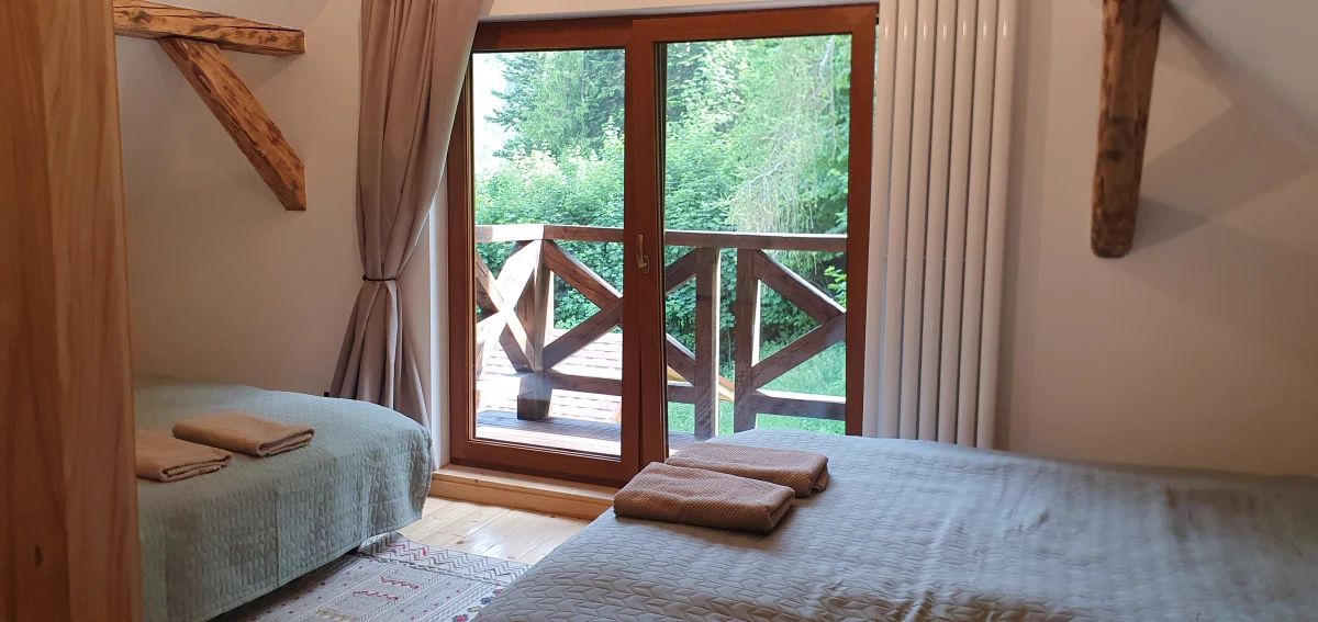 Oferujemy nocleg w przestronnym domu w górach, który pomieści nawet do 18 osób. Do dyspozycji gości oddajemy: