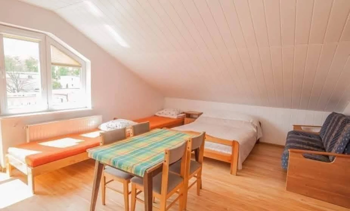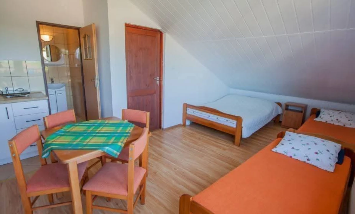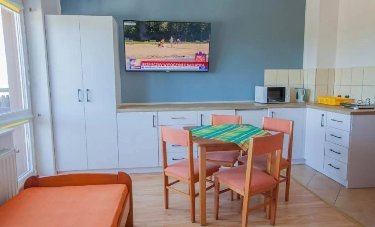 Wolne pokoje 2-6 os. z łazienkami i balkonami lub na parterze z niezależnym wejściem. Aneksy kuchenne (lodówka, kuchenka elektryczna i mikrofalowa, czajnik, naczynia).